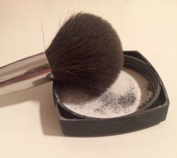 I put this powder on after applying all my face products (e.g. foundation, highlight, blush). I use a big, fluffy brush to swirl the powder in the jar’s lid. I then tap off, blow on the brush to remove any excess and put it everywhere. I tap the product onto my chin, forehead and nose, and then use a more swiping motion on my cheeks.